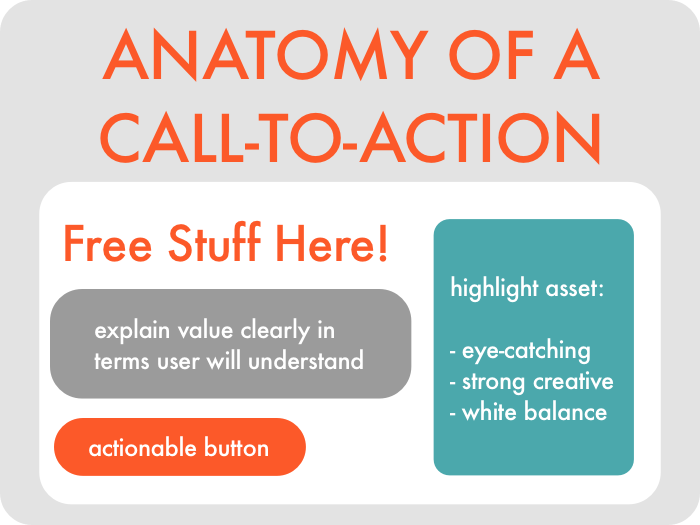 Now I did just lay out that there are four primary issues to handle when it comes to CTAs. But the last issue (placement) can be fixed fairly easily. As long as your button is clear and visible with plenty of empty space to isolate the goal conversion, you should be in the clear.
