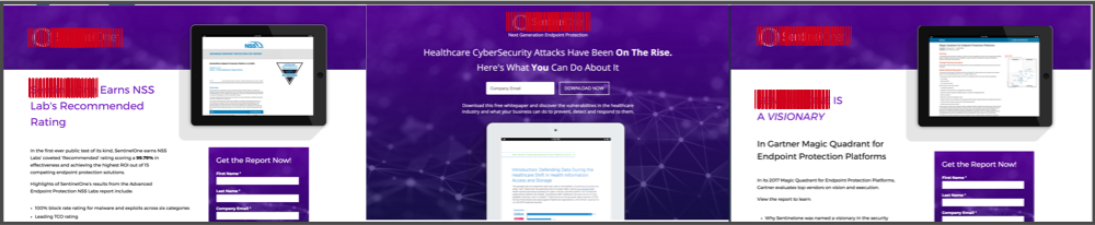 After we looked at the data, we realized that we could create a custom landing page experience for each of these different search intents. One of these was focused on a certain industry report, the second with a new cybersecurity threat, and the third with the actual brand name in mind.