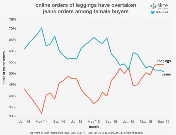 They compared user interest in jeans to give perspective to the growth of demand for leggings: