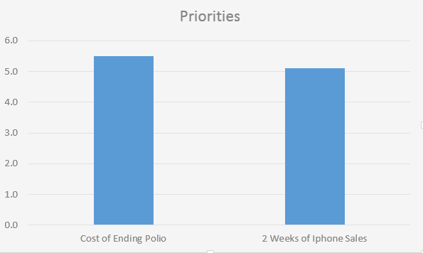 $5.5 billion dollars doesn't seem that much when you realize people spend that amount on iPhones every 2 weeks. We could rid the world of polio for that much! Or, what if we present it like this...