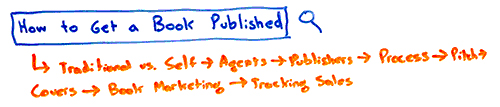 If I search for how to get a book published, that's an expression of need. But underlying that is a bunch of different goals like, well, you're going to be asking about like traditional versus self-publishing, and then you're going to want to know about agents and publishers and the publishing process and the pitch process, which is very involved. Then you're going to get into things like covers and book marketing and tracking sales and all this different stuff, because once you reach your evaluation down here and you get into discovery of additional needs, you find all these other things that you need to know.