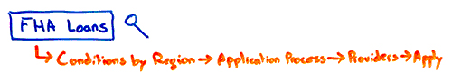 If I search for something like "FHA loans," well that might mean I'm in the mindset of thinking about real estate. I'm buying usually my first house for an FHA loan, and that means that I need to know things about conditions by region and the application process and what are the providers in my area and how can I go apply, all of these different things.