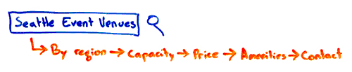 If I do a search for "Seattle event venues," well that means I'm probably looking for a list of multiple event venues, and then I need to narrow down my selection by the criteria I care about, like region, capacity, the price, the amenities. Then once I have all that, I need contact information so that I can go to them.